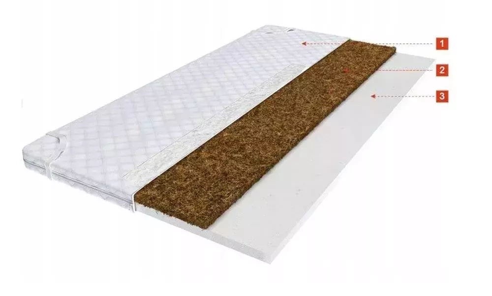 KOKOSINNLEGG - naturlig råvare fra kokosnøttskall. Den har mange positive egenskaper - takket være pustende lag sikrer den riktig luftsirkulasjon, som igjen garanterer beskyttelse mot utvikling av midd og mikroorganismer. Den er spenstig og fleksibel. Madrasser utstyrt med kokosnøttinnlegg sikrer god stabilitet, forhindrer liggesår og er motstandsdyktige mot deformasjon.